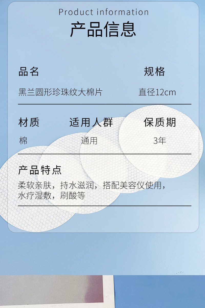 Premium 12cm Round Pearl Pattern Cotton Pads (50 Count) Count 10ea