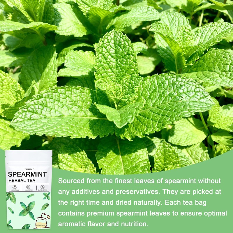 • 【ALL NATURAL】Our spearmint tea bags are made from natural fresh premium spearmint leaves, without any artificial additives or preservatives. When you open the package, a fresh and sweet aroma hits your face, providing you with a revitalizing and healthy tea experience.