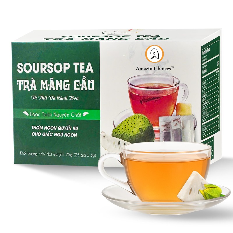 Premium 25 Soursop Tea Bags – Graviola Tea with Soursop Fruit & Flower by Amazin Choices – Vegan, Gluten Free, Sugar Free, Caffeine Free – Natural, No Preservatives