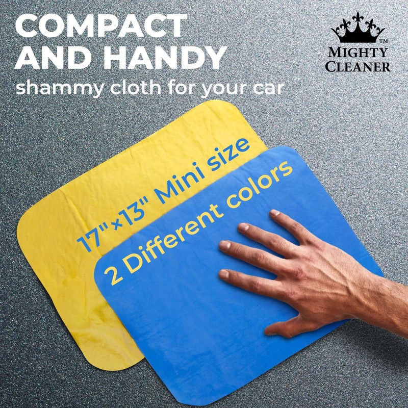 • MINI TOWELS (17”x13”) – The Mighty Cleaner car shammy for drying is the best choice for small surfaces like your car’s mirrors or chrome accessories. This compact synthetic chamois fits perfectly in any storage compartment in your vehicle. Showcase your car while driving around in style, impressing everyone because you look your best while keeping your vehicle clean and spotless.