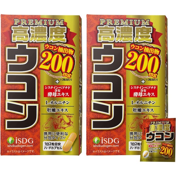 高濃度ウコン PREMIUM ウコンサプリメント クルクミンサプリ ウコン抽出物 シスチンペプチド含有酵母エキス L‐オルニチン 牡蠣エキス配合 携帯便利な分包タイプ 60粒 30日分 (2個セット)