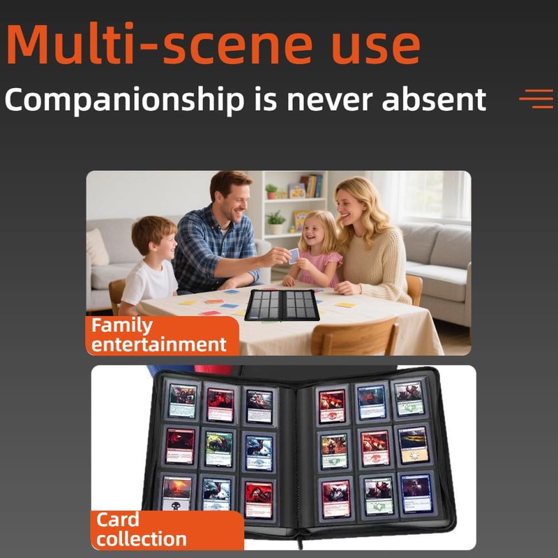 🔥 Premium 9 Pocket Card Binder – The Ultimate Storage Solution for Your TCG Collection! Tired of flimsy, low-quality binders that can’t keep your valuable trading cards safe? Our card binder 9 pocket is designed with durability and functionality in mind, offering the perfect way to organize, protect, and showcase your prized TCG cards. Whether you're a competitive player, collector, or casual enthusiast, this binder is built to meet your needs with superior craftsmanship and thoughtful design. 🛡️ Built to Last – Superior Protection for Your Cards Constructed with a rugged, high-quality exterior and reinforced stitching, this card binder 9 pocket ensures long-lasting durability. The ultra-strong binding prevents pages from tearing, while the secure-close strap keeps your collection safe from accidental spills or drops. 🎴 9 Pocket Design – Perfect for Any TCG With mtg card binder pages, you can store and display your entire collection with ease. Each pocket fits standard-sized trading cards (2.5" x 3.5"), making it ideal for popular games like Magic: The Gathering, Yu-Gi-Oh!, and more, Card stands for sports cards.top loader binder.The side-loading design prevents cards from slipping out, . 📂 Smart Organization & Easy Access No more digging through stacks of loose cards—our trading card storage keeps everything neatly organized. The spacious interior holds up to 360 cards (with 20 pages included), 💼 Versatile for Any Use – Home, Travel, or Events Whether you're heading to a local game night, a major tournament, or just storing cards at home, this 9 pocket card binder is the perfect companion. The compact yet sturdy build fits easily into backpacks, while the smooth-zipping closure ensures quick access when you need it. Plus, the stylish black finish gives it a sleek, professional look that stands out. 🎁 The Perfect Gift for TCG Lovers Looking for a great present for a fellow collector or player? This sports card binder makes an excellent gift for birthdays, holidays, or just because. It’s practical, high-quality, and designed to impress. 🔍 Why Choose Our Binder? ✔ Ultra-Durable – Built to withstand heavy use ✔ 9 Pocket Pages – Holds up to 360 cards ✔ Secure & Protective – Keeps cards safe from damage ✔ Sleek & Professional – Perfect for trades and events Upgrade your card storage today with the best card binder on the market—your collection deserves it!