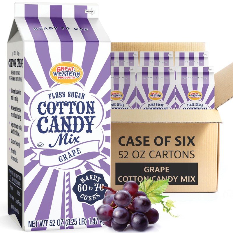 Premium America Grape Cotton Candy Floss Sugar Carnival-Style Fluffy Fun, Pre-Mixed & Ready to Use for Parties, Events & Festivals 3.25 lb Cartons Case of 6