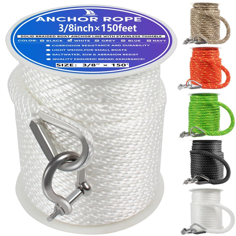 - 【Multi Purpose】The anchor line braided anchor rope while designed for superior strength and flexibility. these premium-grade 3/8 anchor rope 150 ft are soft to touch and easy to handle.anchor line for boat the end result is dependability, long life & true value; braid anchor line polypropylene is exceptional for boating, anchoring, docking,pulling, hanging. Note:This product has a limited load. It is suitable for small boats. If your boat is large, please choose carefully.