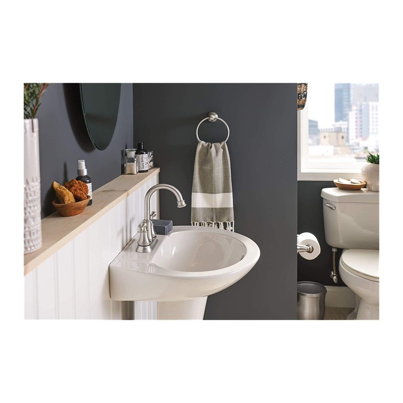 Color:Brushed Nickel Product Description Y2686BN Finish: Brushed Nickel Features: -Towel Ring. -Easy installation. Includes: -Template and hardware included. Options: -Available in several finishes. Construction: -Zinc construction. Dimensions: -Overall dimensions: 6. 79'' H x 2. 32'' D. Collection: -Banbury Collection. : -Manufacturer''s limited lifetime . From the Manufacturer Moen's Towel Ring from the Moen Branded Accessories collection's brushed nickel finish provides a lightly brushed warm grey metallic look. Moen is dedicated to designing and delivering beautiful products that last a lifetime. Moen offers a diverse selection of kitchen faucets, kitchen sinks, bathroom faucets and accessories, and showering products. Moen products combine style and functionality with durability for a lifetime of customer satisfaction.