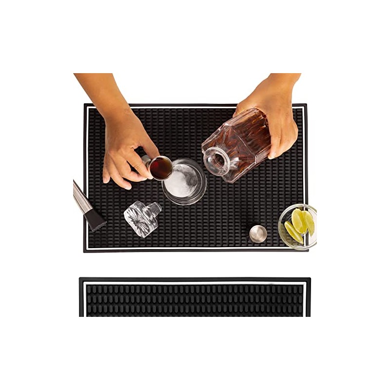 - ✔️ SPILLS FREE BARTENDER MAT: Our 18"x 12" 1cm mat designed to contain spills within the mat. Its extra deep design can hold 16 Oz of liquid. Mix like a professional bartender without any worry. A perfect rubber drying mat for your home and bar