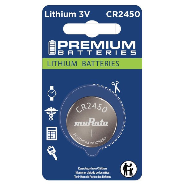 Premium Murata CR2450 Lithium 3V Coin Cell - Japanese Engineered High Capacity Batteries (1 Pack)