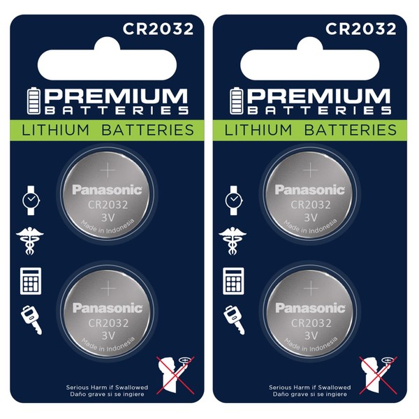 Premium Batteries Panasonic CR2032 Lithium 3V Coin Cell Batteries Child-Safe (4 Pack)