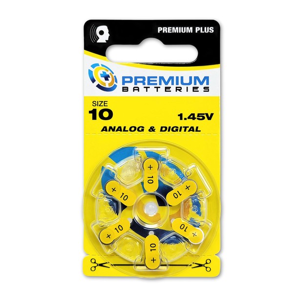Premium Batteries Size 10 1.45V Hearing Aid Battery Yellow Tab (30 Batteries)