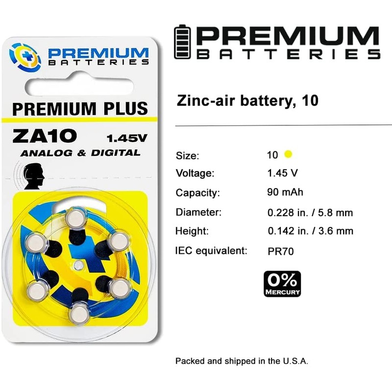 Premium Batteries Size 10 1.45V Hearing Aid Battery Yellow Tab (30 Batteries)