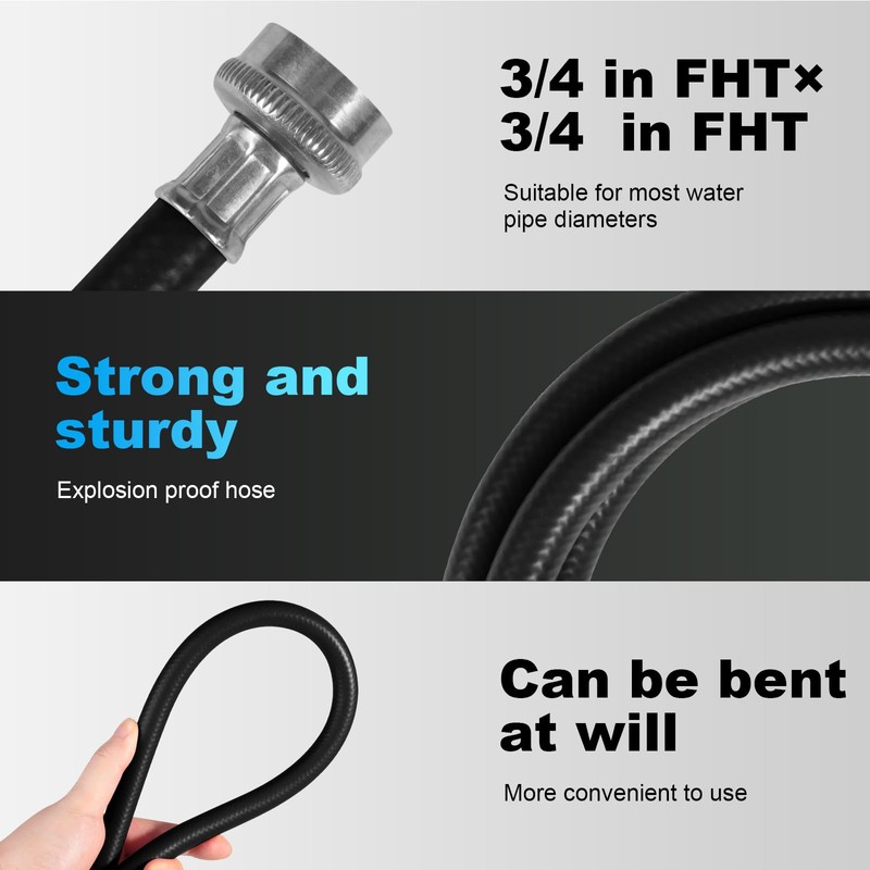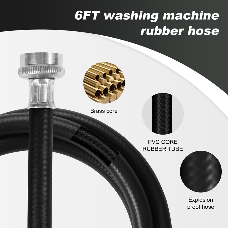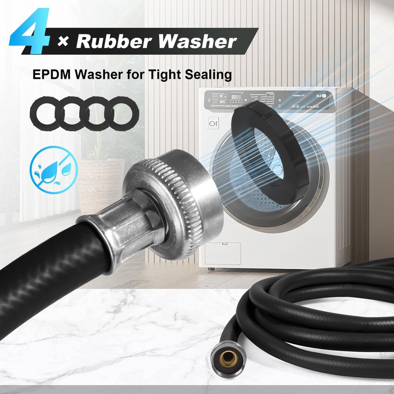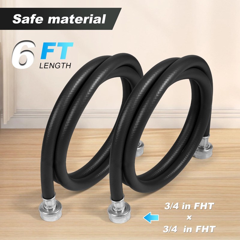 - 5 Years Quality Assurance:Our hoses connect securely to any standard washing machine and standard supply line and includes the washer inserts.each package includes two rubber washing machine hoses with 3/4” nut, 2 x Black washer hose for hot and cold water.