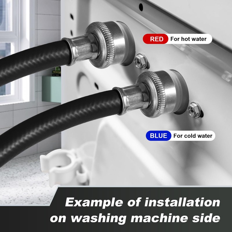 - Washing Machine Hoses: Our rubber washer machine hoses is easy to install, you can quickly and easily attach them to your washing machine and water supply.Each red and blue color coded hose includes fittings for easy installation and removal.