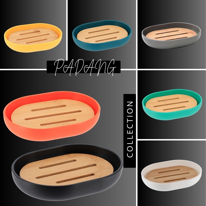 Premium Black Soap Dish Padang with Bamboo Tray - Stylish Bathroom Storage Accessory for Elegant Organization