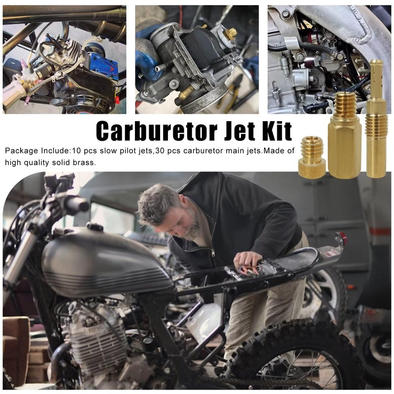 - Please Note: Please double check our pictures , part numbers and description to make sure it is what you need before ordering; Package Includes: 30pcs carburetor main jets and 10pcs slow pilot jets as pictured