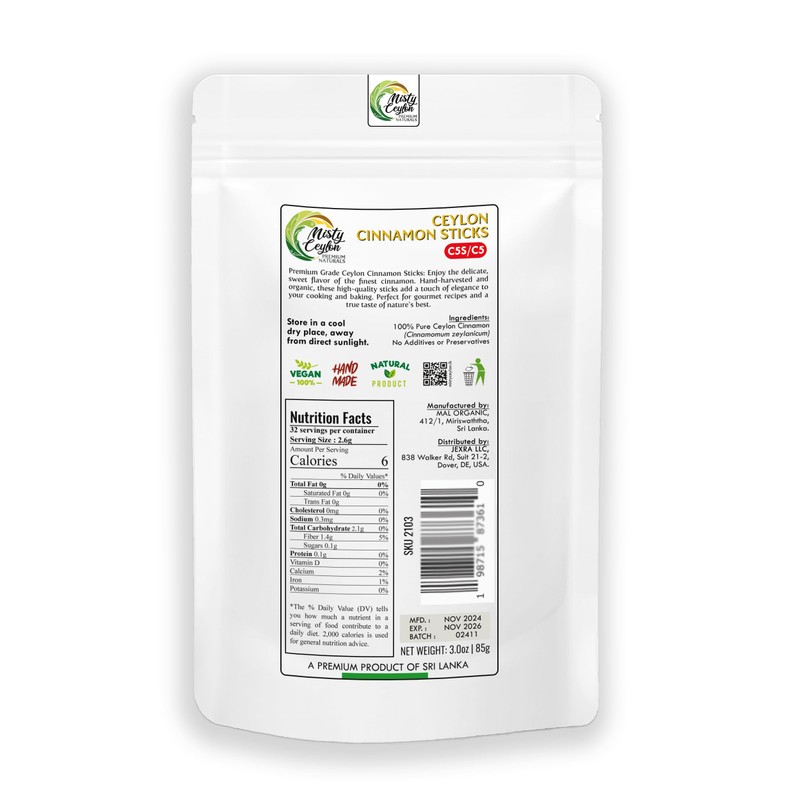 - Authentic Ceylon Cinnamon Sticks: Whole cinnamon sticks sourced for their superior quality and distinctive mild sweetness.