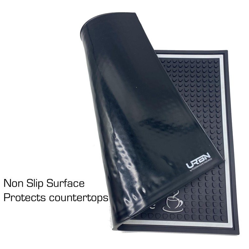 Made of heavy-duty commercial-grade flexible rubber material, the coffee bar mat is durable, flexible, and can withstand daily use without losing its shape. The non-slip base and surface keep your coffee maker and accessories in place, preventing slippery spills and wet countertops.