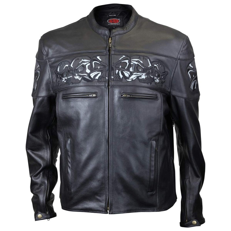 Premium Cowhide Leather Motorcycle Jacket With Reflective Skull (M)