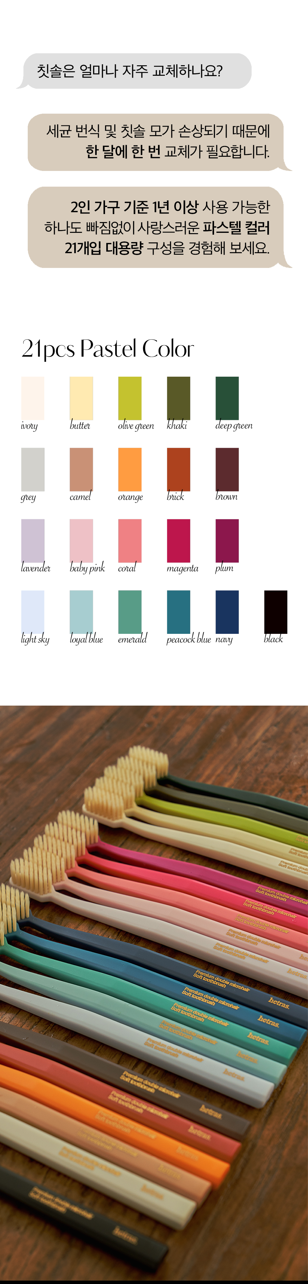 프리미엄 이중미세모 파스텔 칫솔 21개입