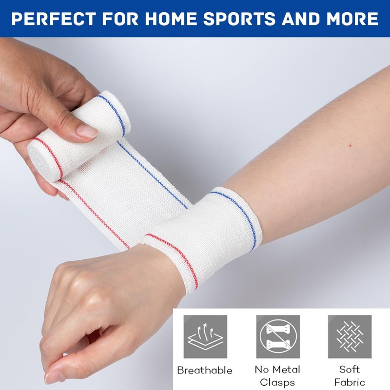 - 💪Individually packaged: Our compression bandages are encased in a protective wrapper until you’re ready to use them. This keeps your wraps hygienic and debris-free, helping to prevent any kind of adverse reaction should an injury occur.