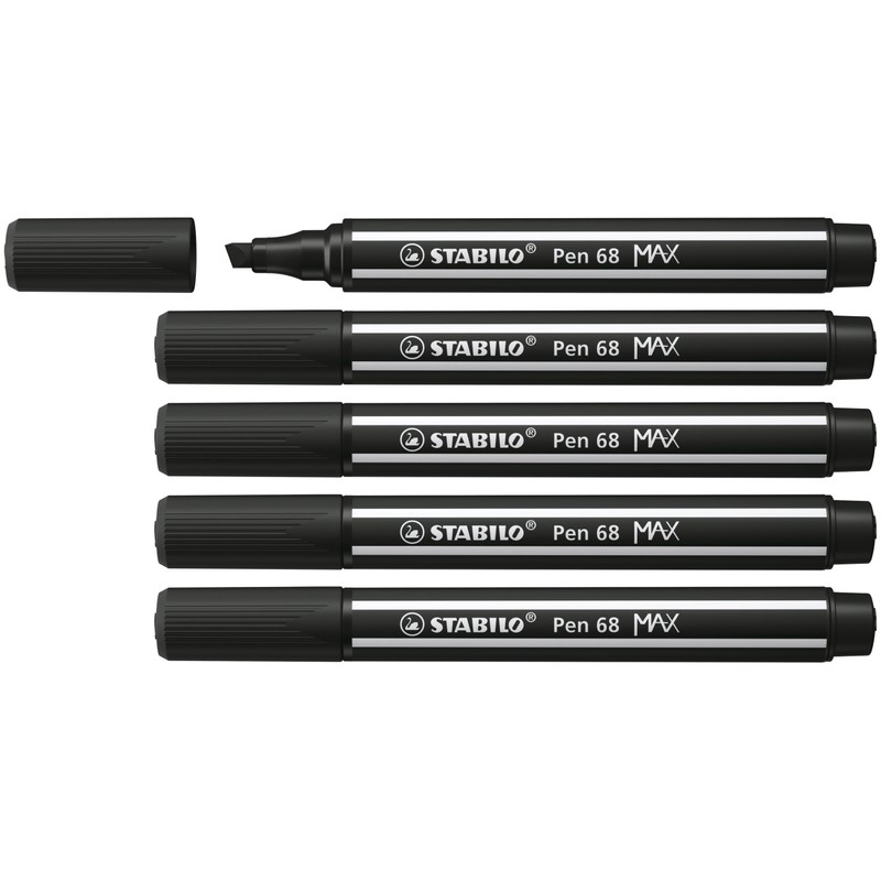 Premium Fibre-Tip Pen with Chisel Tip - STABILO Pen 68 MAX - Pack of 5 - Black
