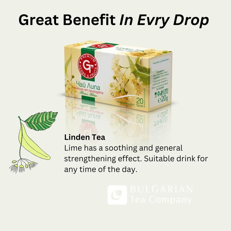Premium GT Herbs & Fruits - Linden Tea 20 Tea Bags 1.5g each | Calming Tea Bags, 30g 0034