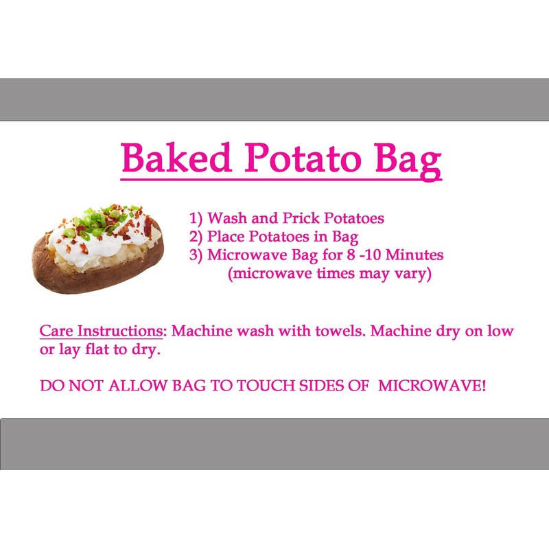 NOTE: A potato bag works by retaining the moisture from the food. Not only does this cook the contents perfectly, it also keeps moisture in the bag.