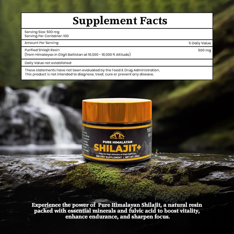 - High Quality Shilajit: Vital Hill Premium Shilajit Resin is a high-quality, natural mineral complex sourced from pristine high-altitude regions. It contains 84+ trace minerals, fulvic acid, humic acid, and other naturally occurring nutrients. Carefully purified for premium quality, our shilajit is crafted to maintain its natural composition.