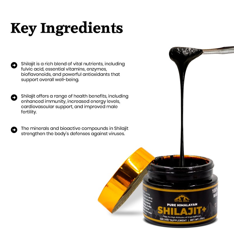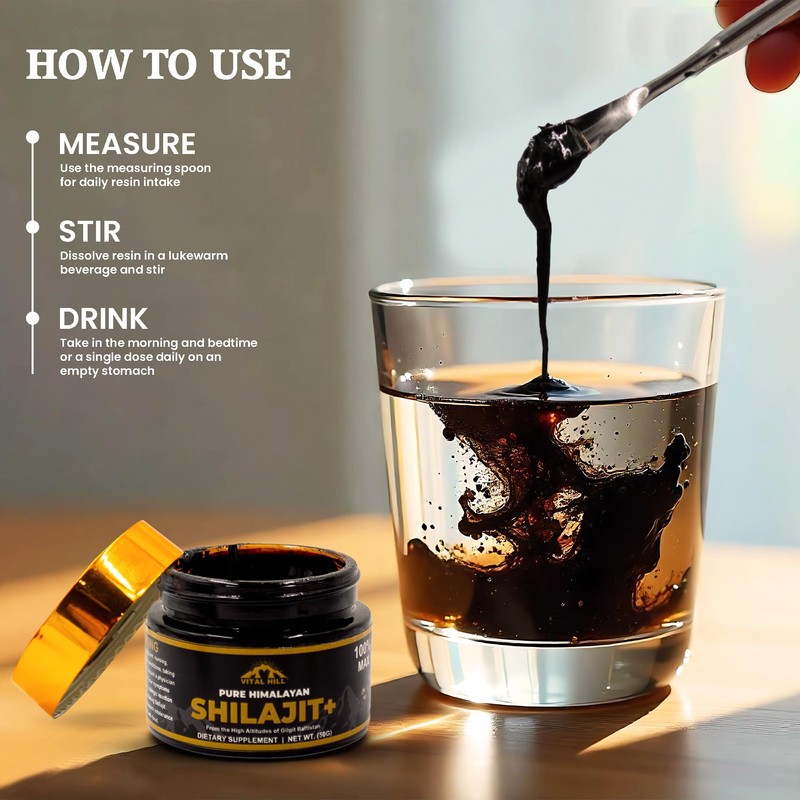 • High Quality Shilajit: Vital Hill Premium Shilajit Resin is a high-quality, natural mineral complex sourced from pristine high-altitude regions. It contains 84+ trace minerals, fulvic acid, humic acid, and other naturally occurring nutrients. Carefully purified for premium quality, our shilajit is crafted to maintain its natural composition.