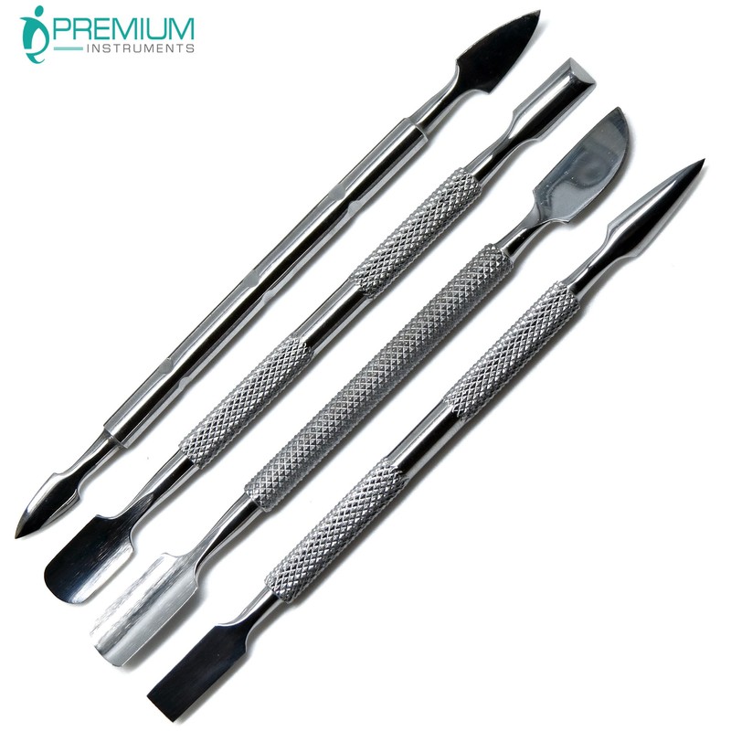 PREMIUM INSTRUMENTS Cuticle Pusher Cutter - Professional Grade Stainless Steel Cuticle Remover and Cutter - Durable Manicure and Pedicure Tool - for Fingernails and Toenails - Set of 4