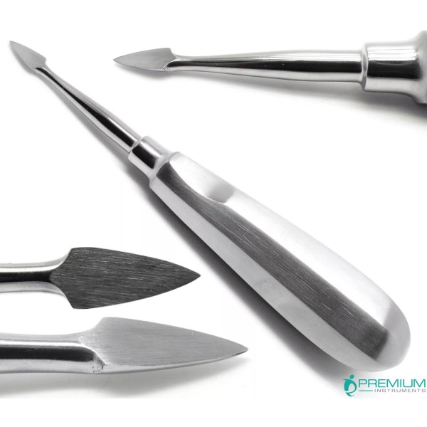 Elevators are designed to make extractions as trauma free as possible by cutting the periodontal ligament while easing the tooth from the socket. The result is less tissue damage that promotes quicker healing and fewer complications. The Premium Instruments Elevator is used by rocking and cutting rather than by lifting and prying the way a conventional elevator is used. - Luxating elevators have thin, sharp blades that are used to cut periodontal ligaments.