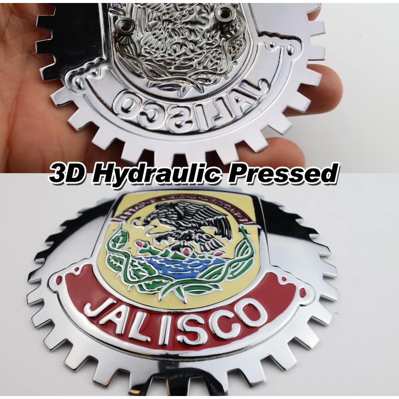 Premium Jalisco Mirror Chrome Red ISO 9001 Mexico Eagle Flag Grill Badge Mexican Emblem for Trucks and Cars