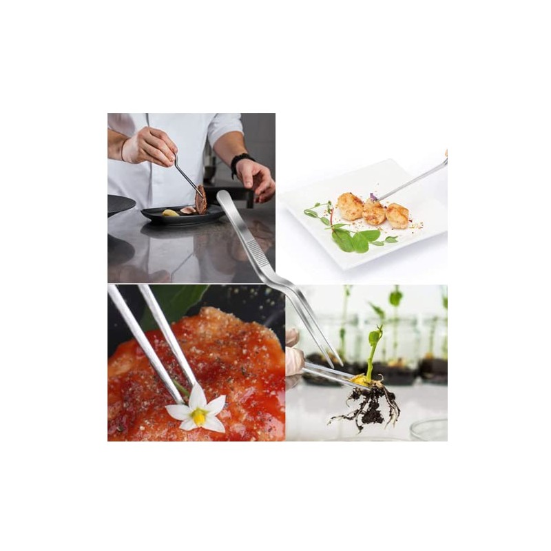 - ✔ Material: The kitchen tweezers are made of food-safe stainless steel, corrosion protection, heat resistance, is robust and durable, can be washed in dishwasher.