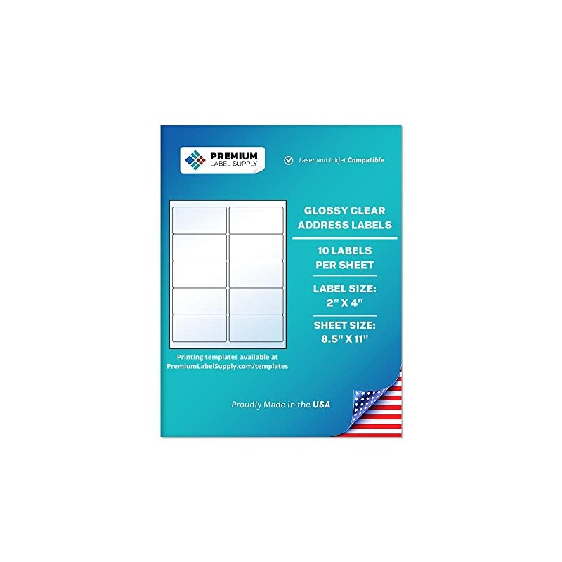 Premium Label Supply Glossy Clear Address Labels – 2" x 4" – Laser/Inkjet Com...