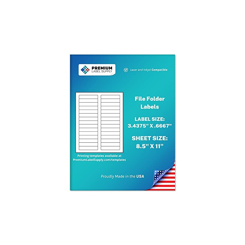 Premium Label Supply White File Folder Labels – 3.4375" x .667" – Laser/Inkjet Compatible – (30 per Sheet), 100 Sheets - 3000 Total Adhesive Stickers