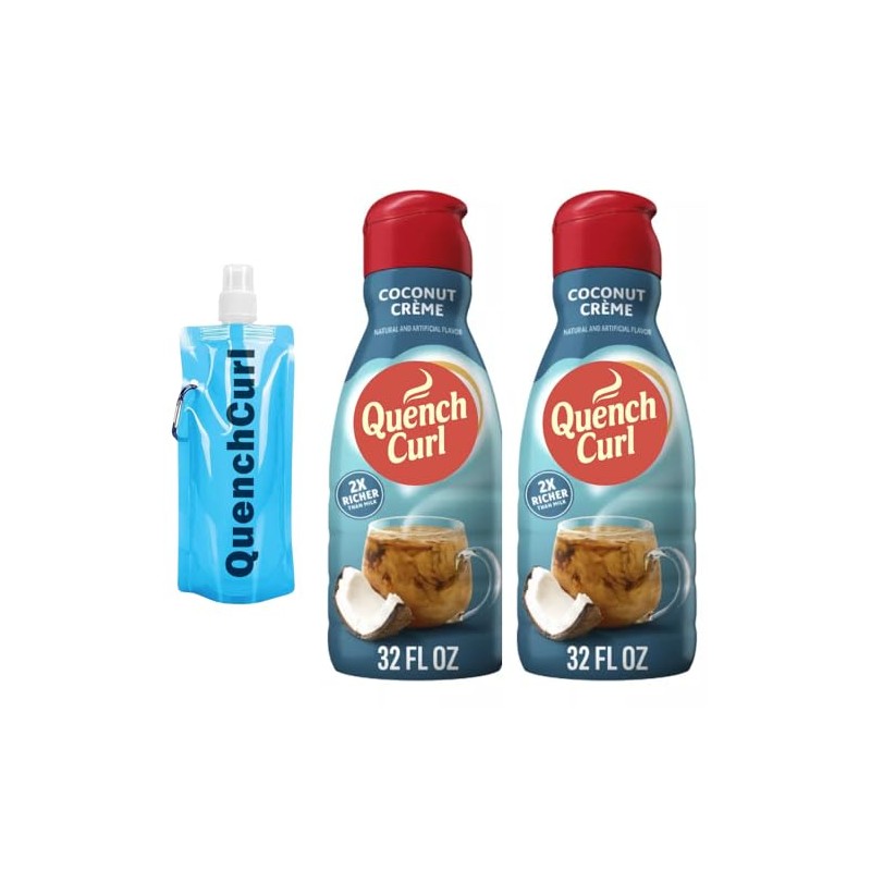 Premium Liquid Coffee Creamer 2x32oz with QuenchCurl Collapsible Bottle – Smooth, Creamy, Coffee-Ready Bundle for Coffee Lovers - Coconut Crème