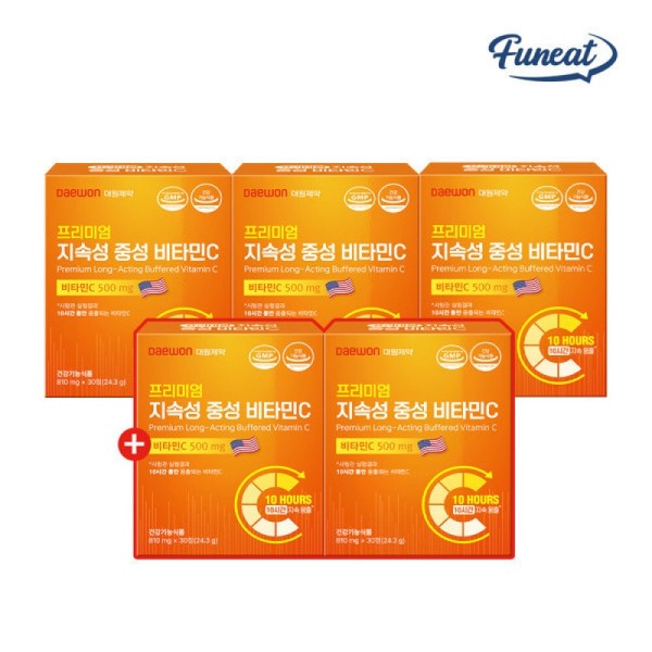 Premium Long-Lasting Neutral Vitamin C High Dose 500% 30 Tablets x 3+2 Boxes / Lasts 10 Hours / 프리미엄 지속성 중성 비타민C 고함량 500% 30정 x 3+2박스 10시간 지속