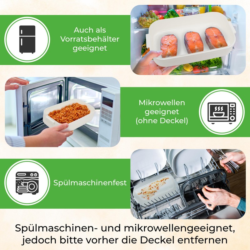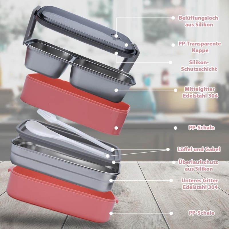 - BELÜFTUNGSDESIGN: Durch die Luftlöcher an der Brotdose kann der Druck entweichen, wenn sie in der Mikrowelle mit geschlossenem Deckel erwärmt wird. Dadurch lässt sich die Lunchbox mit Fächern leichter öffnen, und die Lebensmittel behalten ihre Feuchtigkeit und Nährstoffe besser bei.