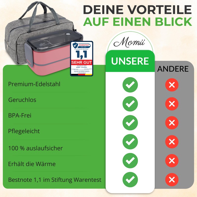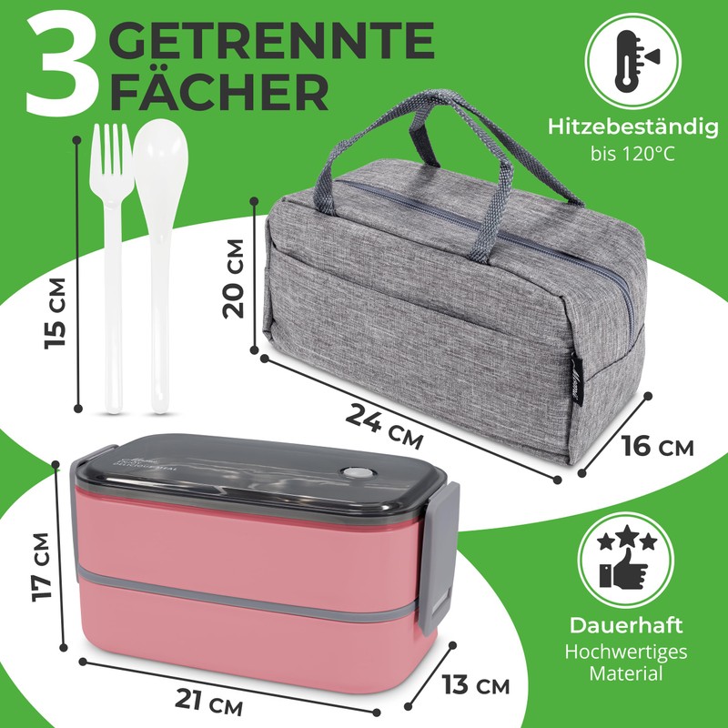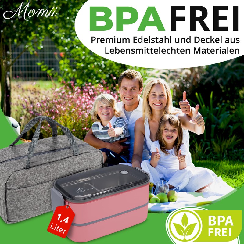 Premium Lunchbox Erwachsene und Kinder inkl. Tragetasche und Besteck Bento box Edelstahl Brotdose Kinder mit Fächern Brotdose Erwachsene Kindergarten Lunch box Jausenbox Brotdosen Bananenbox (Rosa)