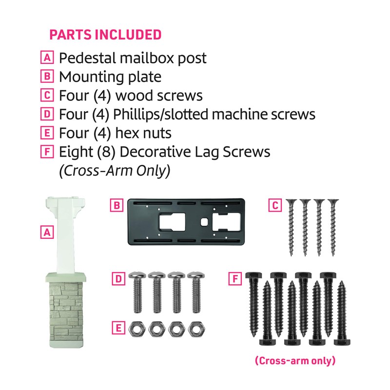 PAK Premium Mailbox Post Set - Make a great first impression from your curb with this easy-to-install Pak Premium Mailbox Post Set, complete with post cover, mounting plate and hardware. The post set comes pre-assembled for ease of simplicity of installment. The mailbox is sold separately, our Mailbox Post Set works seamlessly with mailboxes of every style from classic to modern.