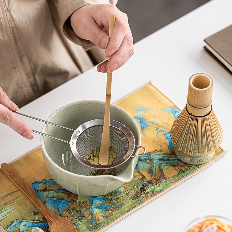 - 8-PIECE MATCHA WHISK SET--1* Ceramic Bowl(Chawan) 530 ml/17.9 oz, 1* Matcha Whisk(Chasen), 1* Bamboo Scoop(Chashaku), 1* Wooden Spoon, 1* Whisk Holder, 1* Stainless Steel Sifter, 1* Scoop Holder, 1* Tea Cloth(Chakin). Each tool is carefully crafted to enhance your matcha experience, perfect for veteran matcha lovers and novices alike.