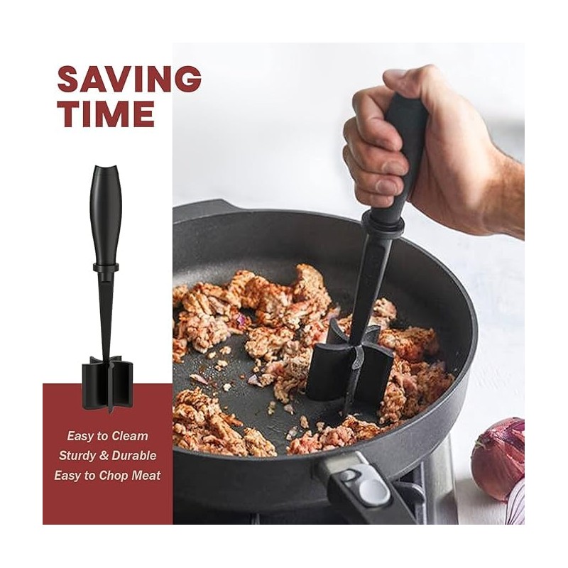- Efficient Chopping: This premium meat chopper features a sturdy nylon construction to easily chop and mash ground beef, turkey, or other meats.