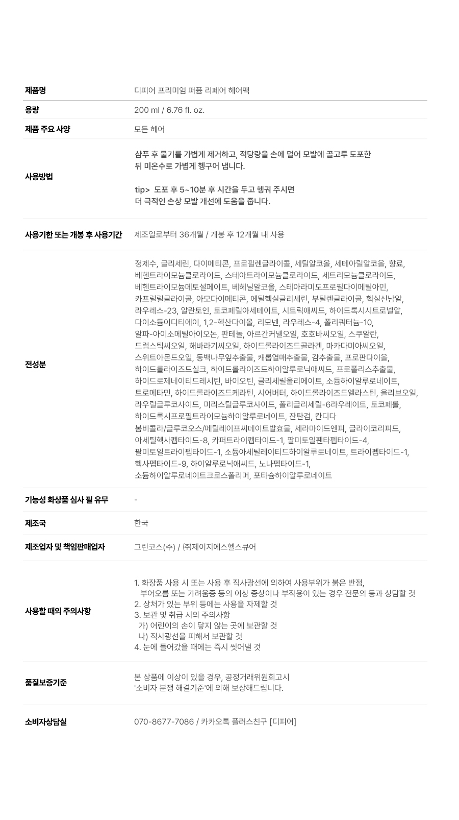 프리미엄 퍼퓸 극손상 단백질 헤어팩 트리트먼트 200ml