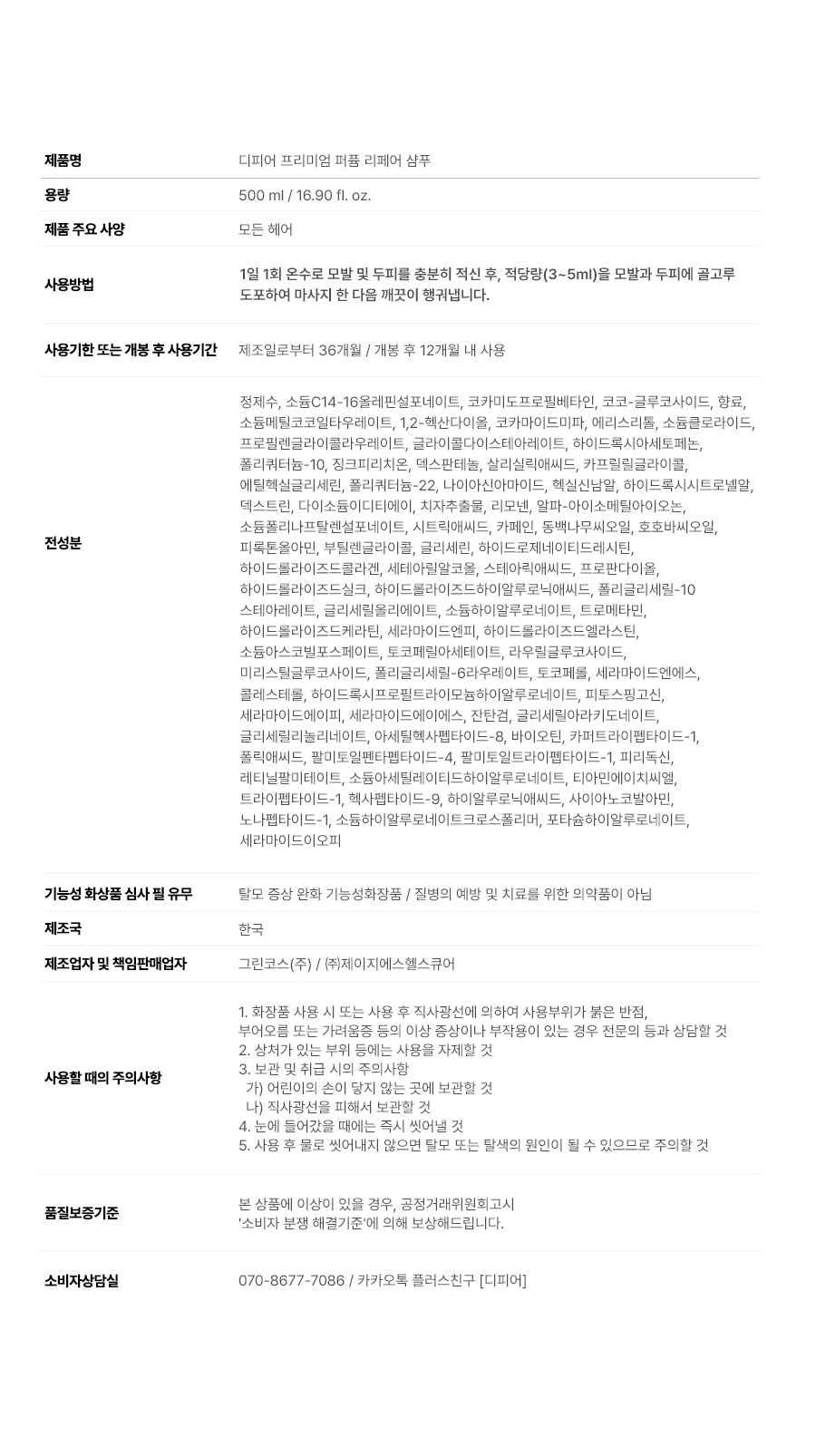 프리미엄 퍼퓸 탈모 증상 완화 샴푸 500ml