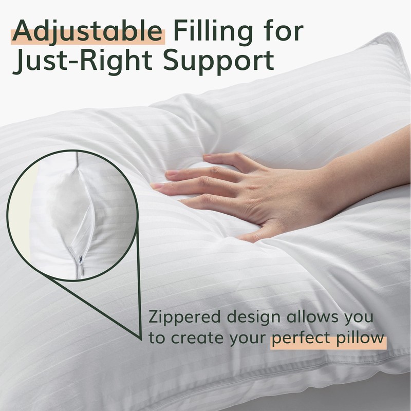 - Adjustable Filling - The zipper on our bed pillow allows you to adjust the filling to meet your firm, flat, or fluffy preferences. (Be sure to massage the pillow to distribute filling evenly).