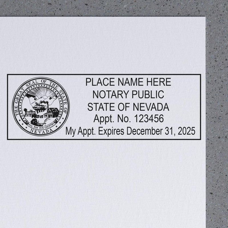 Our Rectangular Self-Inking Nevada Notarial Stamp isn't just about functionality; it's also about compliance and professionalism. Each stamp includes all necessary details—such as the notary's name, commission number, and expiration date—ensuring every document you notarize meets Nevada's legal standards. The use of the official state seal on your documents signifies trusted legal authority, making each notarization legally recognized and beyond reproach.