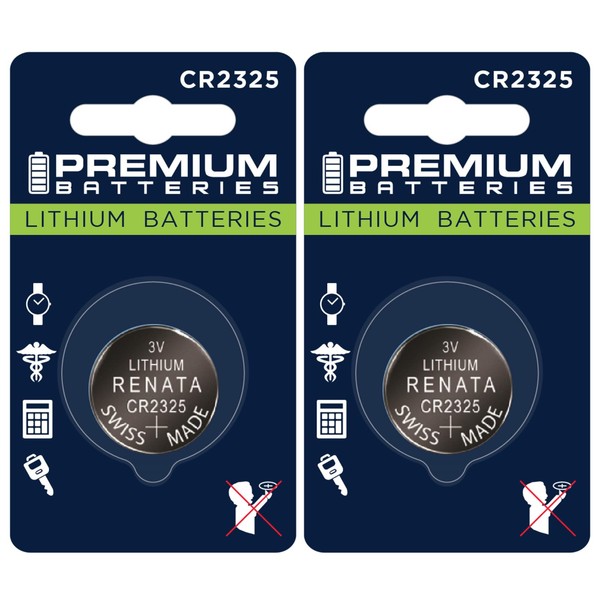Two (2) Renata CR2325 Battery in new Child-Safe Retail Consumer Packaging, by Premium Batteries