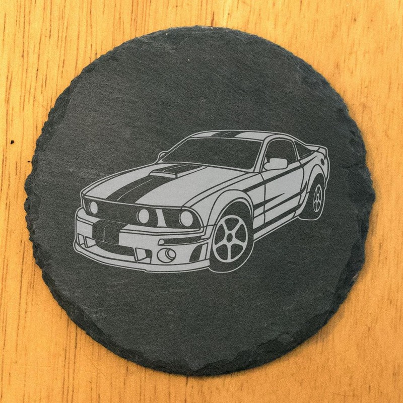 Emblazoned with an intricately laser-etched image of the iconic Ford Mustang, these coasters serve as a conversation starter, blending automotive passion with practicality. Perfect for car enthusiasts, these coasters effortlessly merge artistry with functionality.