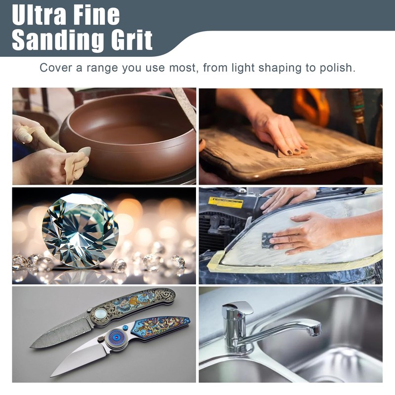 - Comprehensive Grit Range: Available in a wide range of grits including 80, 120, 180, 220, 320, 400, 600, 800, 1000, 1500, 2000, 3000, 4000, and 7000, perfect for everything from heavy stock removal to ultra-fine finishing.