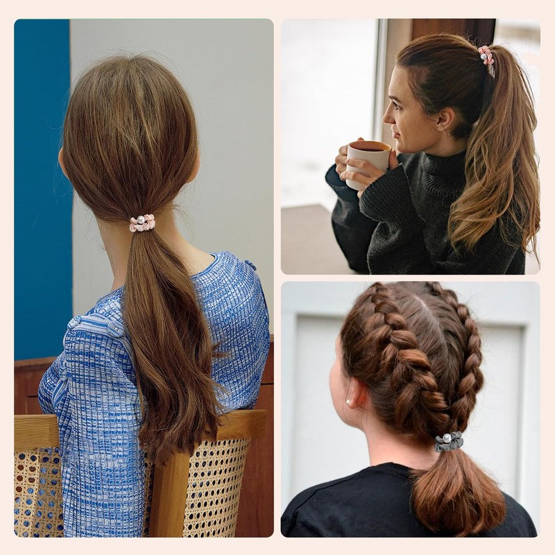 - Verbesserte Weichheit: Diese Haargummis sind weicher als gewöhnliche Seidenhaargummis und passen sich leicht an die Bedürfnisse unterschiedlicher Haarmengen an, sodass sie sowohl bei dickem als auch bei feinem Haar festen Halt bieten, ohne zu drücken.