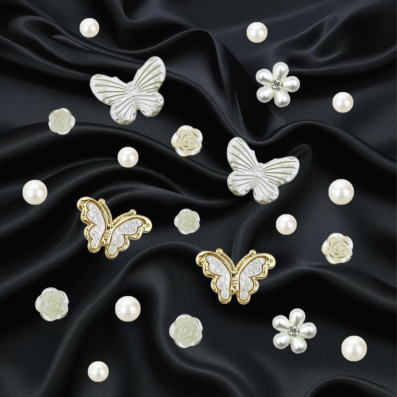 Premium Shoe Charms for Women 3D Floral & Butterfly Designs with Sparkling Rhinestones, Pearls & Crystal Links - DIY Shoe Jewelry Accessories for Girls, Creative and unique gifts (22 Pcs-pearls)